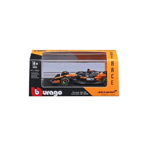 The Bburago McLaren MCL39 Oscar Piastri 1/64 miniature is designed as a simple, display-friendly replica of a modern Formula 1 car. It features clean body lines, printed sponsor markings and a compact scale that works well for shelves or desk setups.