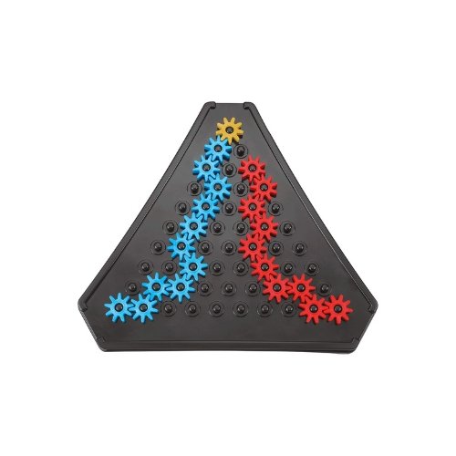 Ratnas Gears Strategy Game introduces children and adults to a clever battle of planning and precision. Players take turns placing coloured gears on the triangular board, aiming to build an unbroken chain from one end to the other. While the rules stay easy to understand, mastering the strategy requires foresight and smart decision-making.