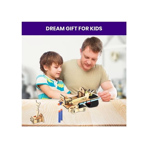 The set includes foam darts, a target stand, and easy step-by-step instructions, making it a safe and enjoyable activity for kids. As they assemble and play, children develop problem-solving skills, fine motor skills, and hand-eye coordination while understanding key STEM principles like elasticity, trajectory, and mechanics.